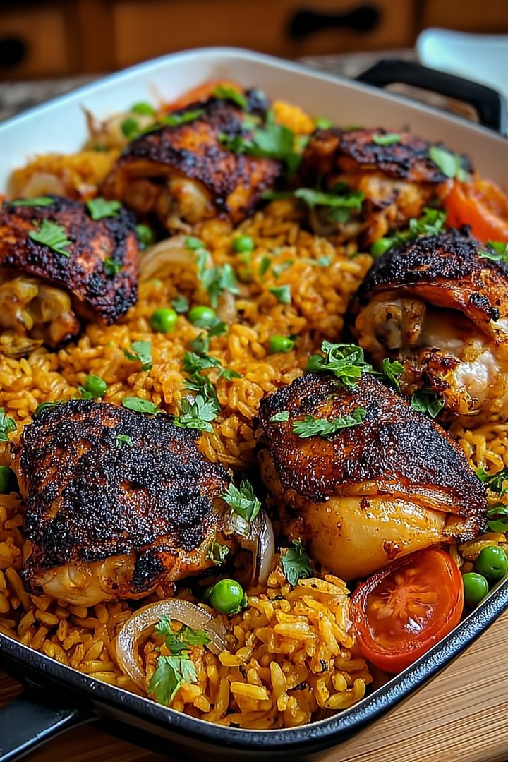 Balance the richness of the chicken and rice with a light and refreshing salad. A mango salsa salad, with diced mangoes, red onions, cilantro, and lime juice, is a perfect complement. A simple green salad with a vinaigrette dressing also works well.