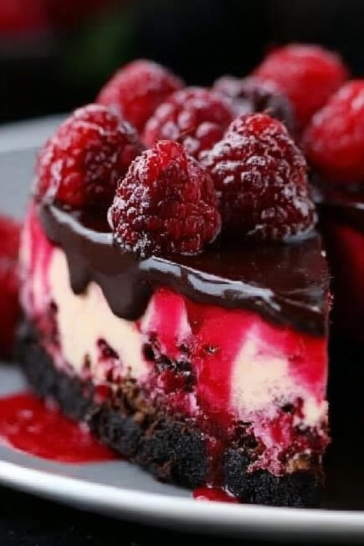 Dark Chocolate Raspberry Cheesecake
