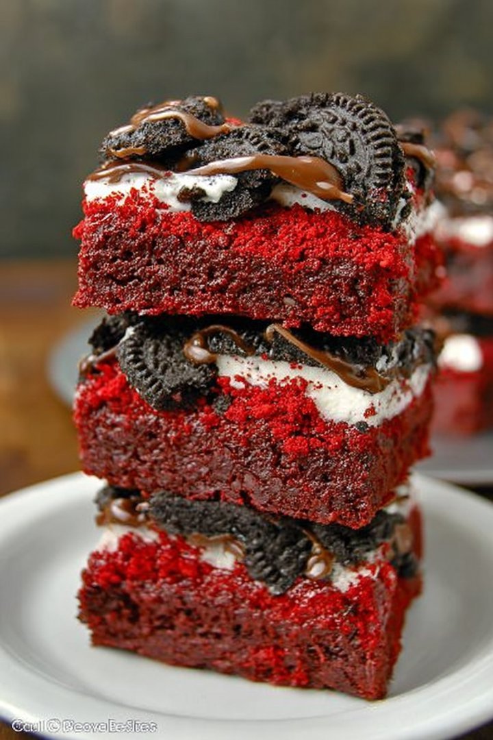 Oreo Stuffed Red Velvet Brownies