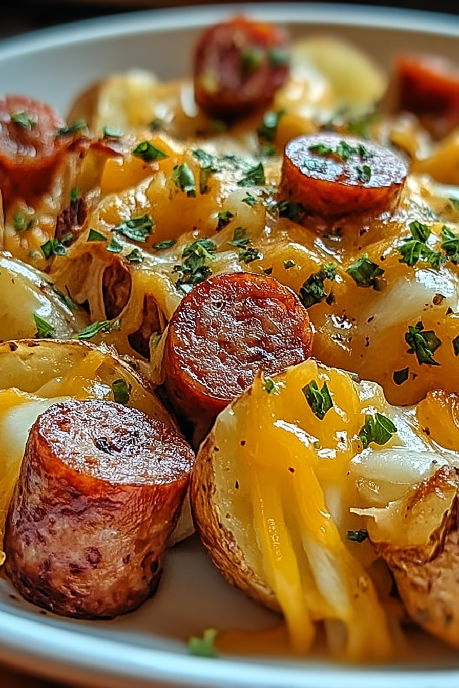 Cheesy ranch potatoes and smoked chicken sausage