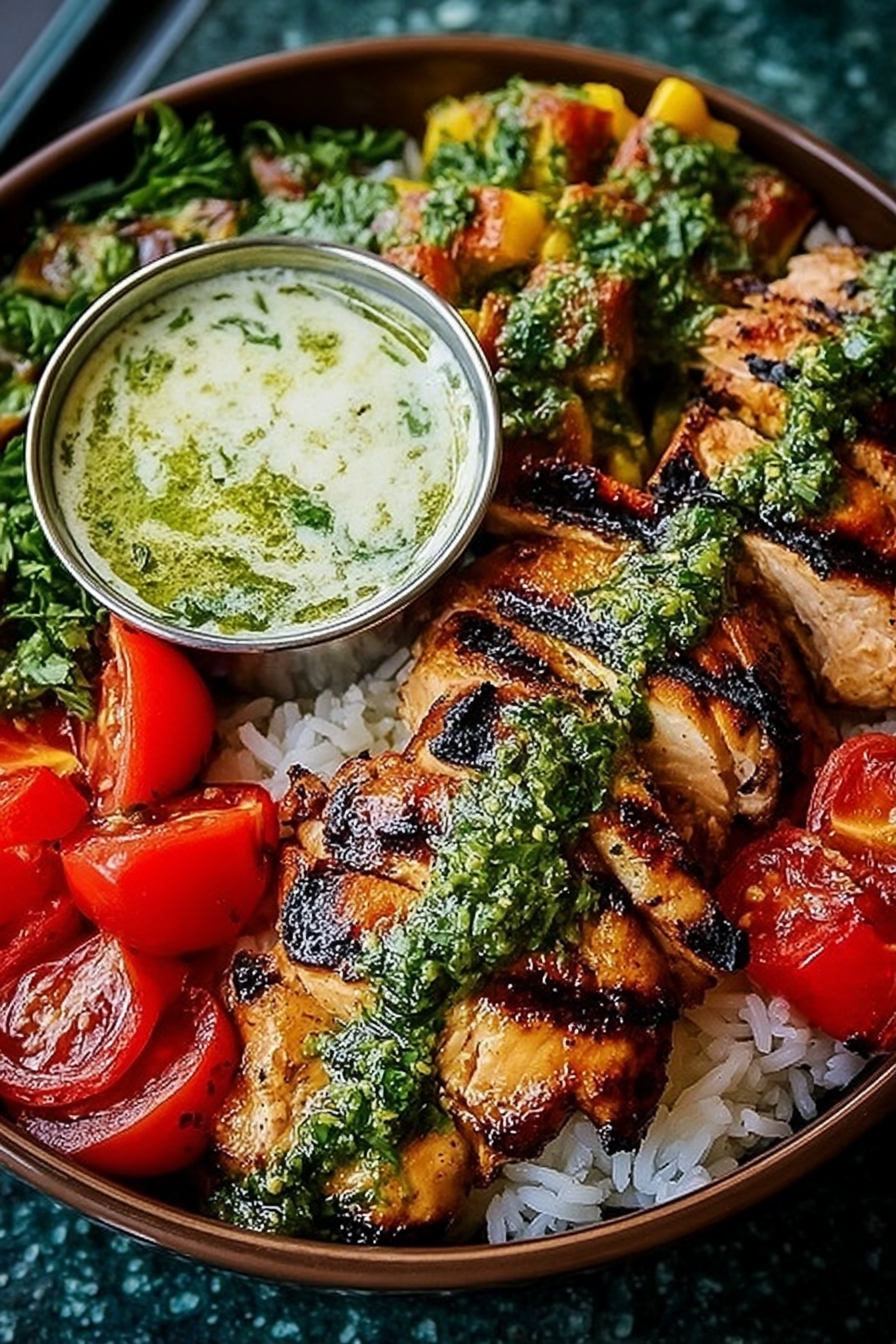 Chimichurri Grilled Chicken Bowl with Garlic Sauce