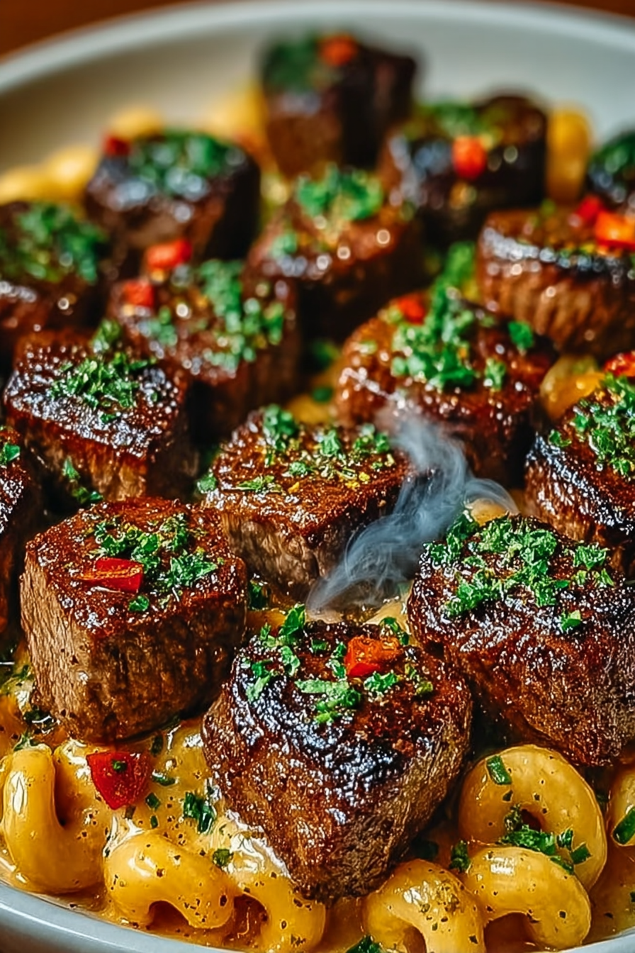 Cajun Steak Bites with Cheesy Garlic Mussels