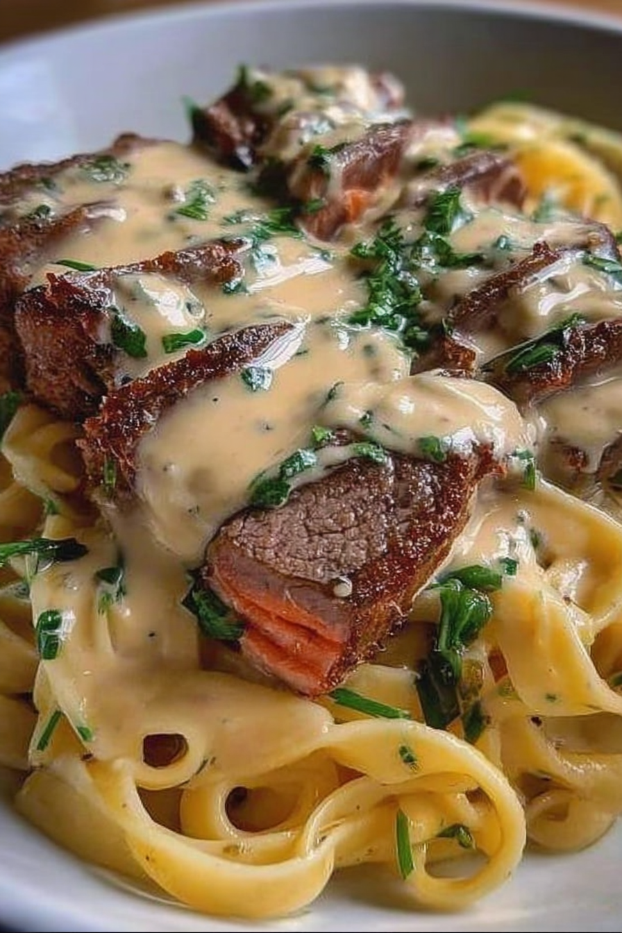 Savory Steak Gorgonzola Alfredo with Creamy Parmesan Sauce