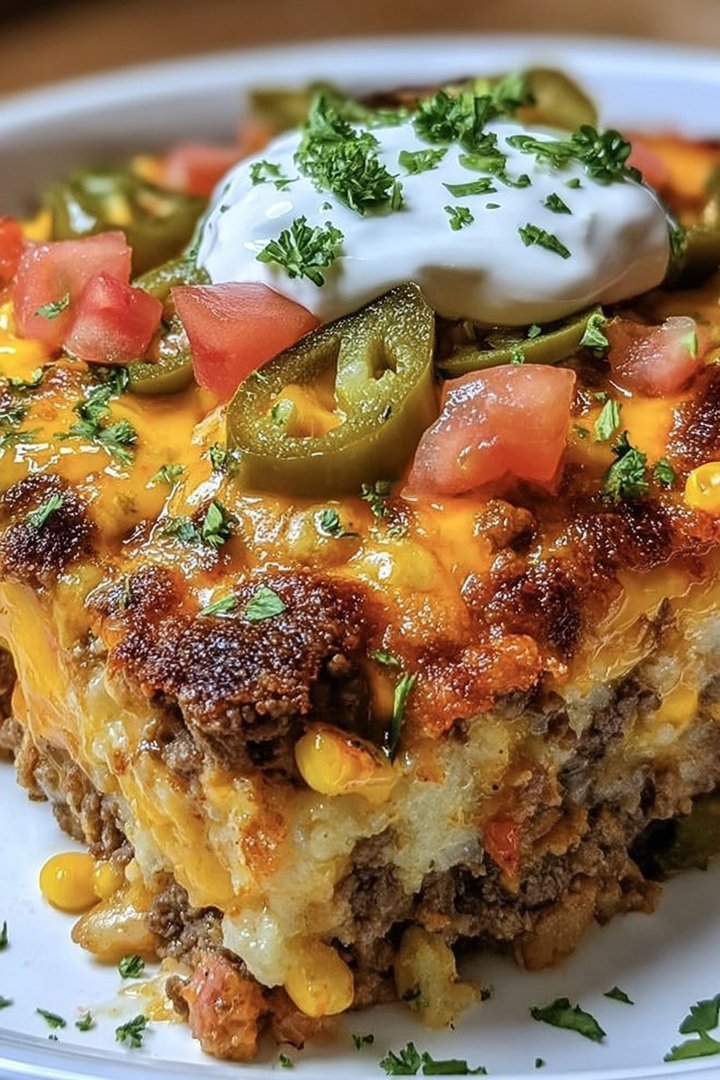 - A delightful mix of savory beef, crisp vegetables, and a creamy, cheesy layer providing a well-rounded, comforting taste.