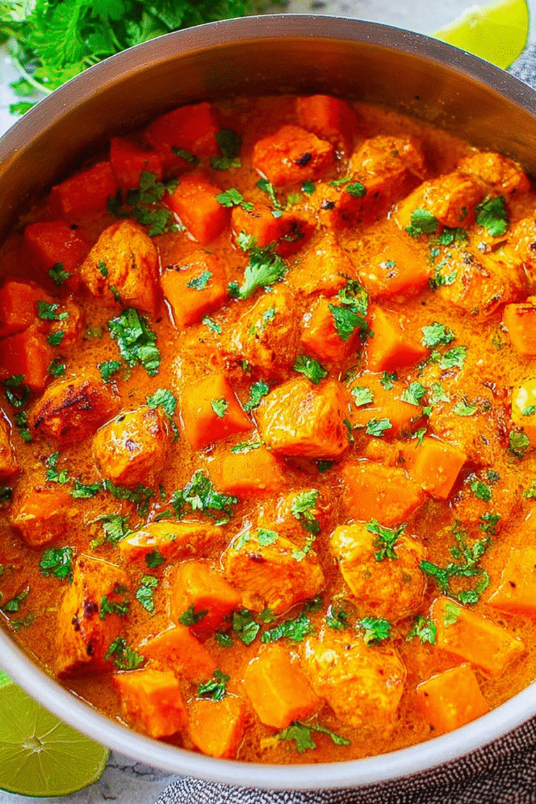 Delicious chicken sweet potato curry recipe with detailed instructions and nutritional information.