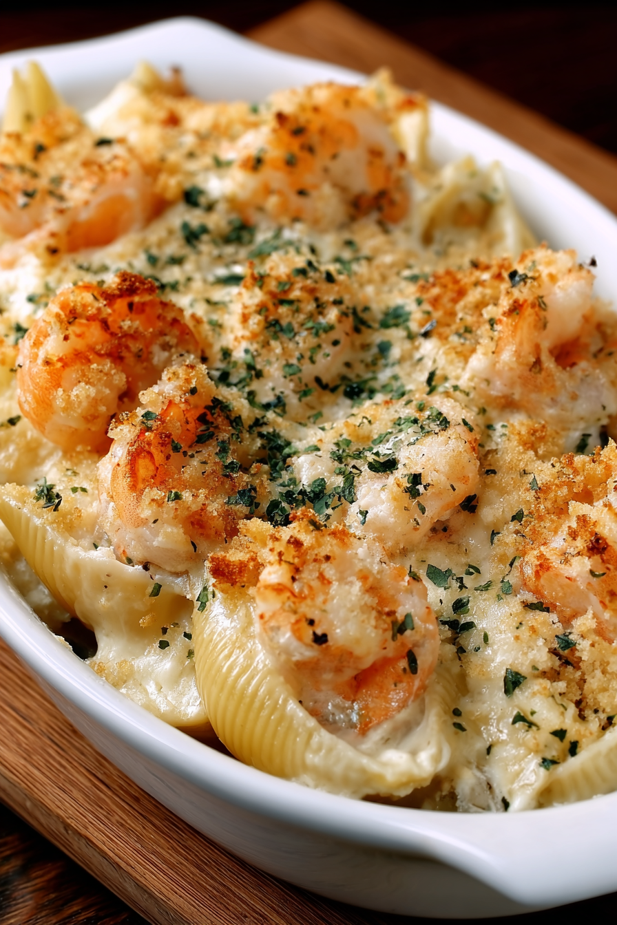 Delicious creamy seafood stuffed shells recipe with detailed instructions and nutritional information.
