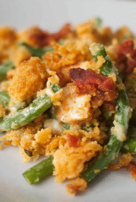 Cheesy turkey beef beef bacon and green bean casserole