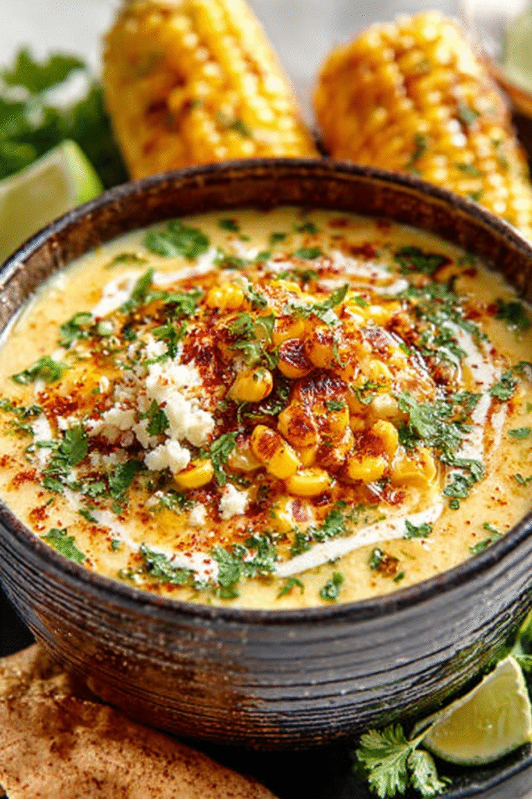 Delicious mexican street corn chowder recipe with detailed instructions and nutritional information.