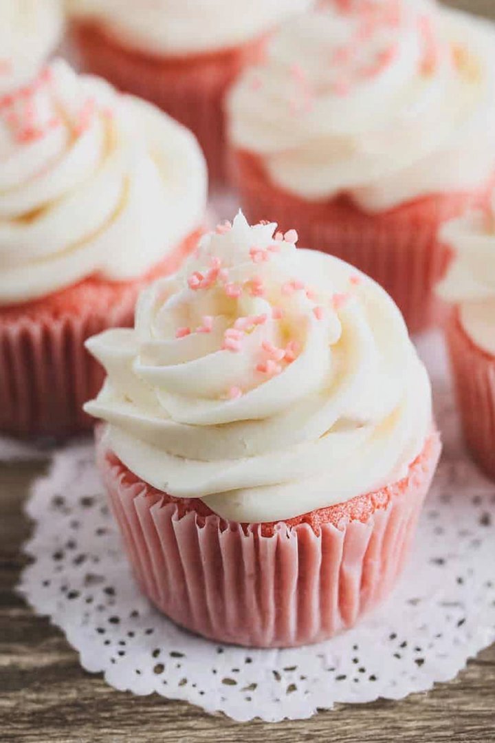• Red Food Coloring Gives the cupcakes their signature pink hue; use gel food coloring for a more vibrant color.