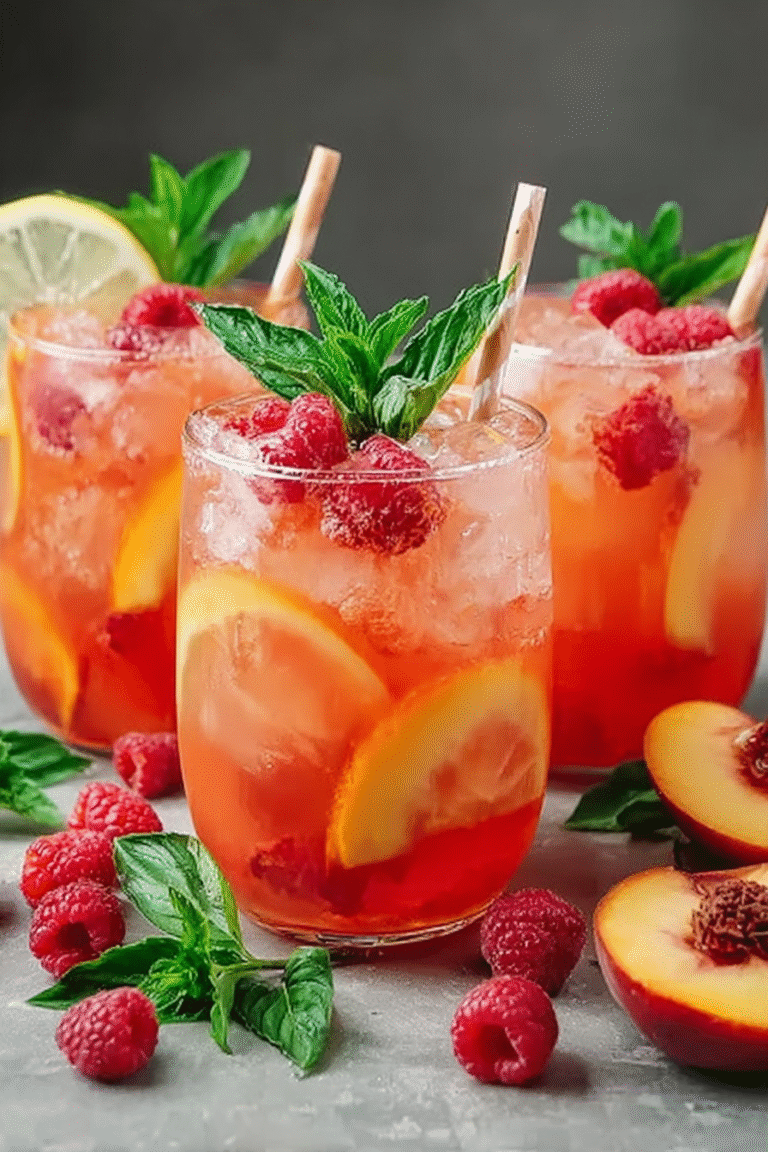 This recipe, my friends, is more than just a drink; it’s a testament to my chaotic yet somehow successful attempts at adulting. Picture this: me, armed with a blender and a questionable amount of fruit, trying to channel my inner mixologist. The result? This unbelievably delicious Raspberry Peach Lemonade.